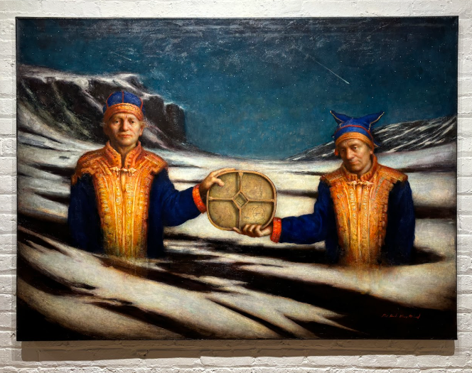 In the contemporary gallery, the current exhibition features the oil paintings of Per Elof Nilsson Ricklund, a Sámi artist whose surrealist work features the symbols and values of his culture. I adore his style, use of color, and level of detail.